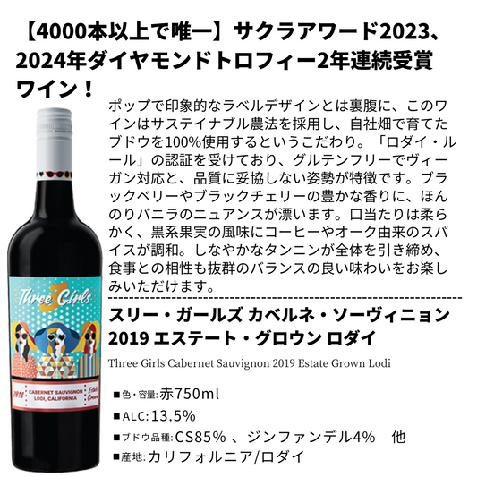 2019 スリー・ガールズ カベルネ・ソーヴィニヨン エステート・グロウン ロダイ [グルテンフリー]