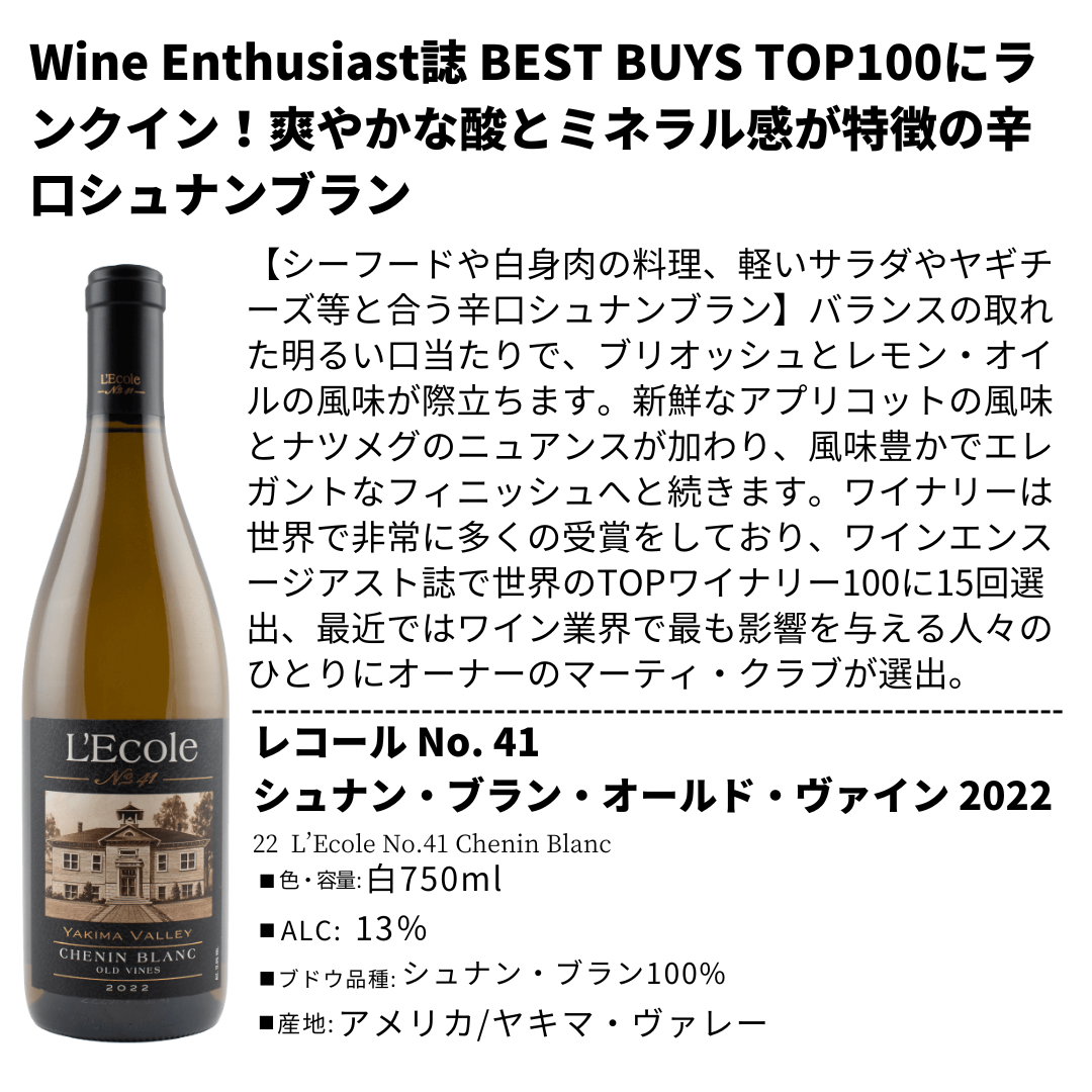 レコール No 41 シュナン ブラン オールド ヴァイン 2022